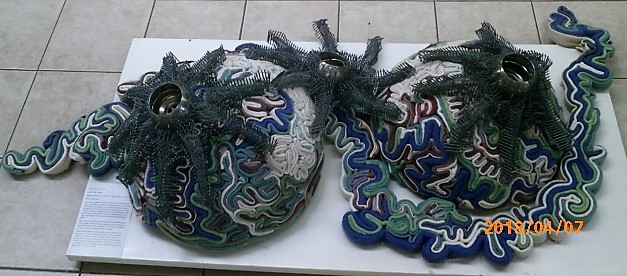Thorn in the Reef Posted by Fondation Suzanne Bastien - Art Gallery, Port Vila, Vanuatu on April 7, 2018 Artist: Holly Pepper Materials used: woollen blankets, hessian and glue
